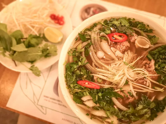 汤粉(Pho)是越南菜中最经典的代表,基本只要是越南餐厅就一定会有的一道料理,也基本可以作为鉴定餐厅功力的一道菜。汤粉最重要的部分就是这碗汤,据说越南汤面的汤底,一般以牛腩、牛骨、花椒、八角、香茅、香叶、白胡椒粒等煲足8小时,煲的过程要不断去掉煲出来的杂质,最后出来的就是牛肉清汤。