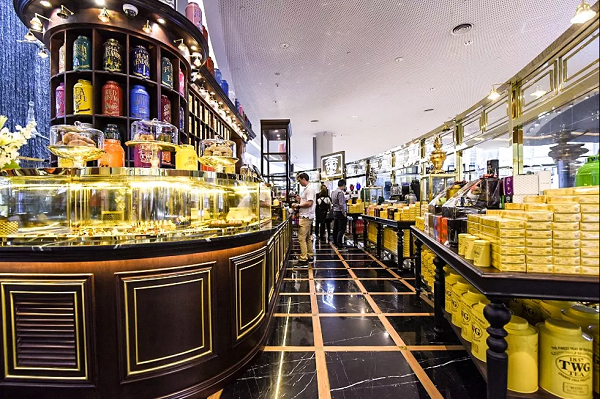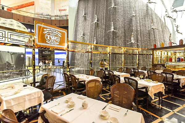 TWG茶铺坐落在Dubai Mall内的瀑布旁,透明的落地窗户可以很好地照顾到茶客们的视野,既能一边品茶,又能耳闻瀑布的流水声,听觉和视觉方面已经加分不少,是一个逛MALL累了非常适合歇脚的地方。茶铺里面座位不多,周末的下午去还常常需要等位。