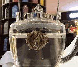 这个系列的特色是一整颗花骨朵放进茶壶里面,花骨朵会在5分钟内慢慢自然舒展开来,像动态绽放的花。这又给喝茶添加了一丝趣味,不仅照顾到了嗅觉、味觉,还照顾到了视觉的三重享受。