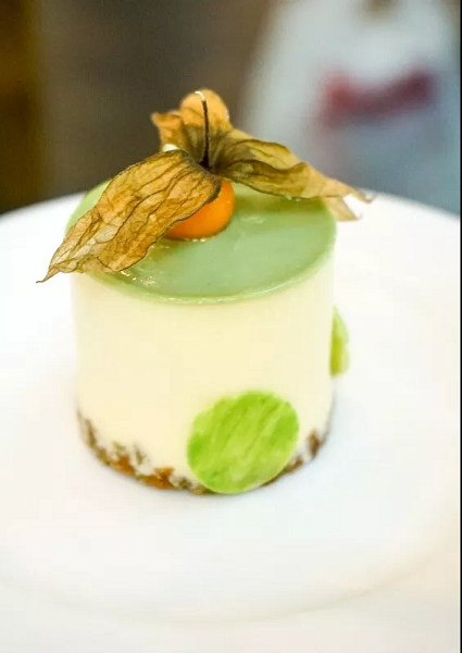 这款甜点混搭了中东人最爱的开心果和中国人热衷的抹茶,真正可谓中阿风味的混搭。芝士蛋糕有包含开心果颗粒的饼底,中间部分是抹茶味的戚风蛋糕,外层包裹着浓郁芝士。整体来说,开心果和抹茶的配搭和谐新颖,推荐大家来尝尝这种配搭。