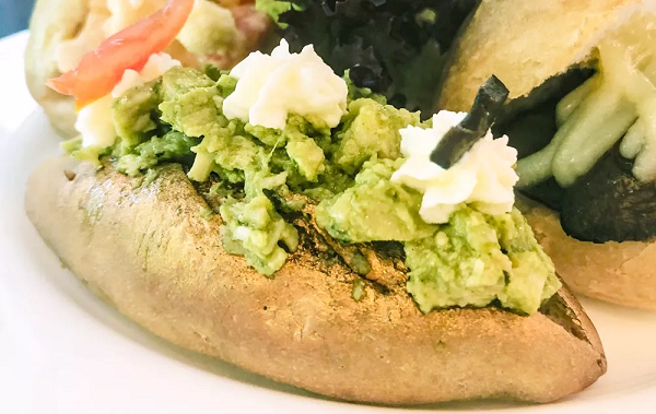 这款茶点有点奢华,意大利青酱配上鸡胸肉,如果你是正在健身的朋友一定会喜欢这款高蛋白的低卡食品。奢华的点在于配的这个面包,外皮是裹了一层金箔的。喜欢奢华感的朋友,一定来试试看。