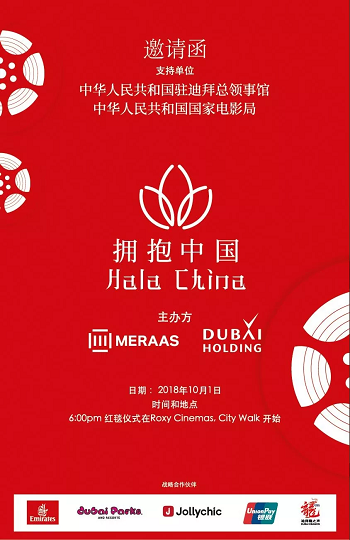 拥抱中国计划是由迪拜Meraas集团和迪拜控股集团联合发起涵盖贸易、投资、文化、旅游等各个领域的中阿友好计划。而此次的中国电影周便是该计划的首批活动之一。