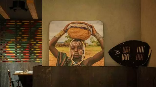 Tribes — 部落餐厅,光听名字就野性十足。深色系的木质设计元素,和竹编的灯饰,以及餐厅墙上的非洲土著照片,展现出时尚与原始结合的摩登气质。而在墙上一枚来自2017 Goodfood最佳非洲餐厅的奖牌,则在低调地展现实力。