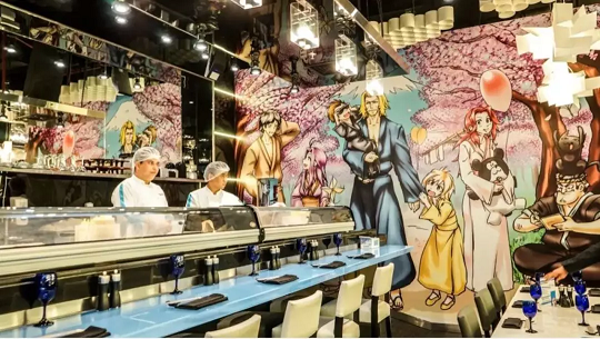 作为迪拜为数不多的走日漫二次元路线的餐厅,MANGA SUSHI不仅装潢充满了二次元情怀,秋季坐在户外区域还能望见迪拜喷泉以及哈利法塔。