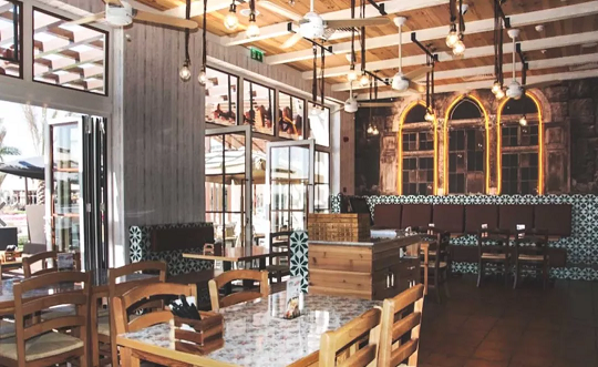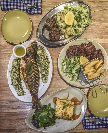 Eat Greek是迪拜为数不多的希腊餐厅,餐厅环境有着地中海的风格,木质桌椅简约大方,而蓝白的方巾贴合希腊主题,带着小小的文艺气息。