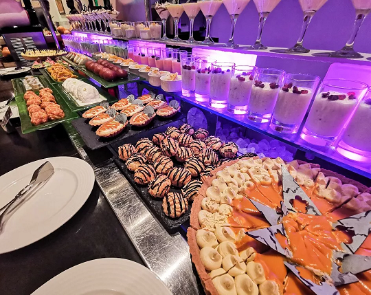 迪拜美居酒店紧挨着Internet city地铁站,酒店也提供免费泊车,无论对有车族还是无车族都比较友好。Day & Night餐厅的环境谈不上高大上,但干净整洁,座位也很多,可以应付大流量就餐。而且亚洲之夜的价格是130迪拉姆/位含软饮,在自助界也算是比较平价的了。