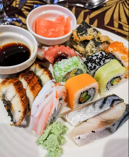 日餐部分虽然也是印度人在切配捏,但胜在食材丰富而新鲜。寿司在外国人制作来说属于标准水平,但难得的是有烧鳗鱼和腌渍的青鱼,还有章鱼刺身,这在其他自助餐厅都不是特别常见,也是很符合华人的口味。尤其是鳗鱼的味道很是香醇,虽然没有日料店的鳗鱼那么浓郁,但不配米饭吃的话其实刚刚好。