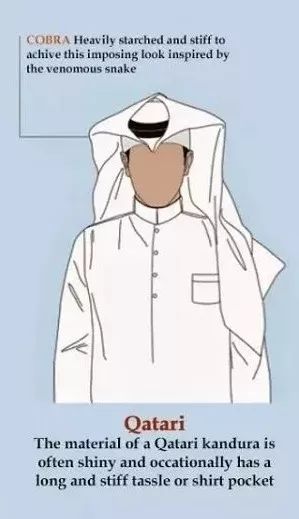 卡塔尔人的服饰通常用那种会白到发光的材质,显得非常干净整洁,偶尔会有衬衫口袋或长流苏。