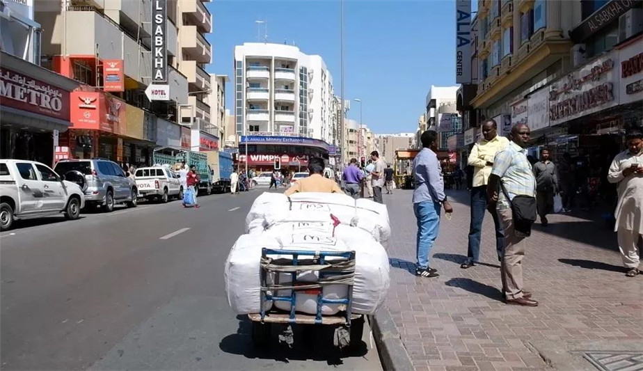 早上10点,萨拉姆需要赶到市场工作,这也是迪拜贸易市场的开门时间,一直到晚上10点半,萨拉姆都会在市场里接活。在迪拜老市场,像萨拉姆这样的劳工成千上万。