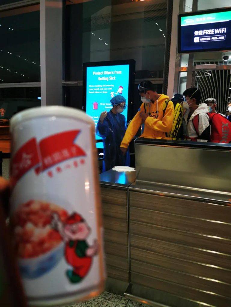 大概等了一个多小时,说是可以提前下飞机了,我们抵达机场的大厅后每个人拿到一个号,等着一会被叫号检查。大厅准备了干粮(八宝粥,饼干,矿泉水等),心里默默觉得还是祖国最好。