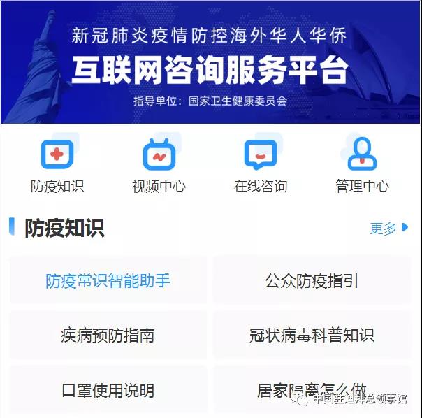 近日,国家卫生健康委搭建新冠肺炎疫情防控海外华人华侨互联网咨询服务平台,整合多家医疗机构和第三方平台资源,面向海外侨胞免费提供相关健康咨询服务,主要功能包括: