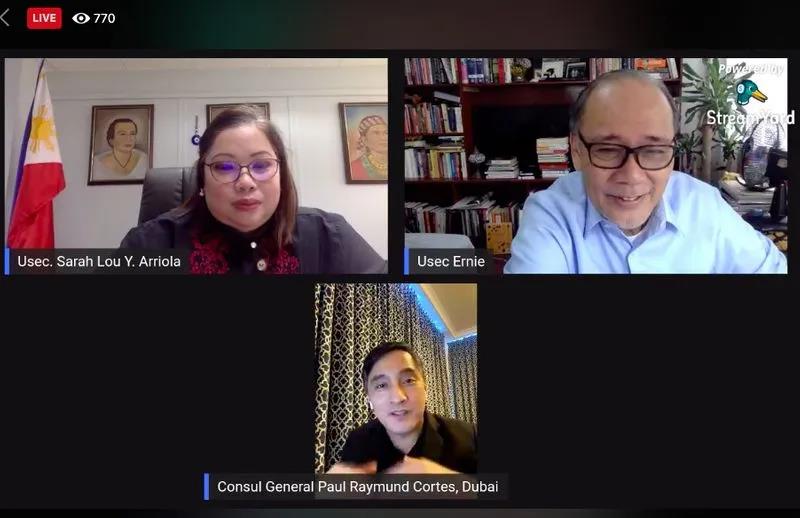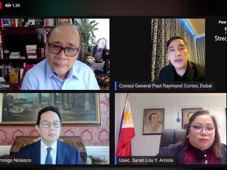 菲律宾外交部(DFA)副部长莎拉·卢·阿里奥拉和埃内斯托·阿贝拉(Sarah Lou Arriola and Ernesto Abella on Thursday)在周四主持的一档帮助OFW(海外菲律宾工人)的节目中,呼吁失业、签证过期或因为疫情而导致生活压力陡增的海外菲律宾公民考虑回国。