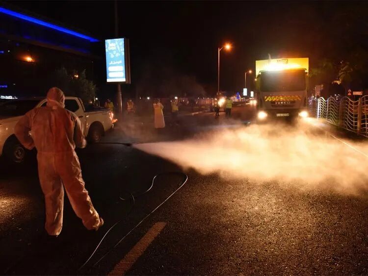 迪拜24小时消毒计划始于2020年4月4日,是加强预防新冠病毒传播的措施之一。
