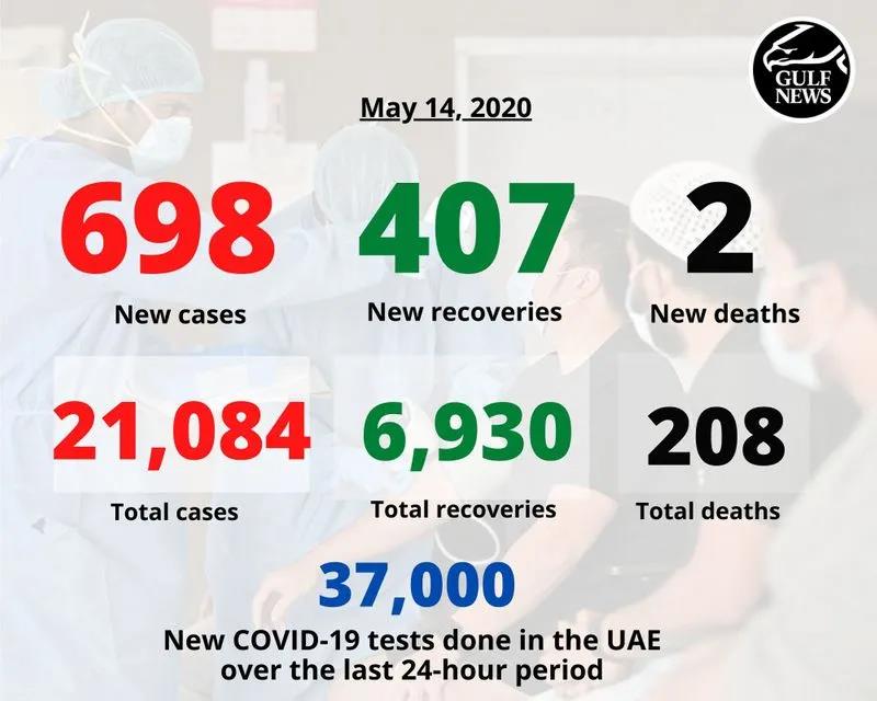 周四(5月14日)阿联酋卫生和预防部宣布,该国单日新增698例感染病例,感染总数上升至21084例。