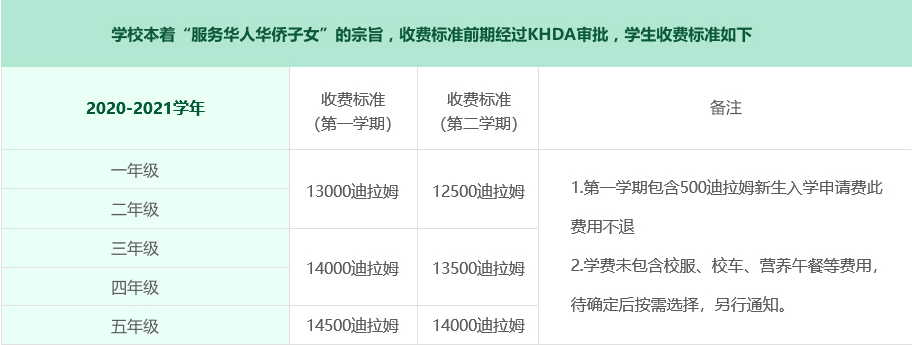 2020年秋季迪拜中国学校拟招收一年级新生3个班、二年级新生3个班、三年级新生2个班,四年级新生2个班,五年级新生1个班,每班原则上不超过26人(超过预设人数,采用摇号确定入学名额)。