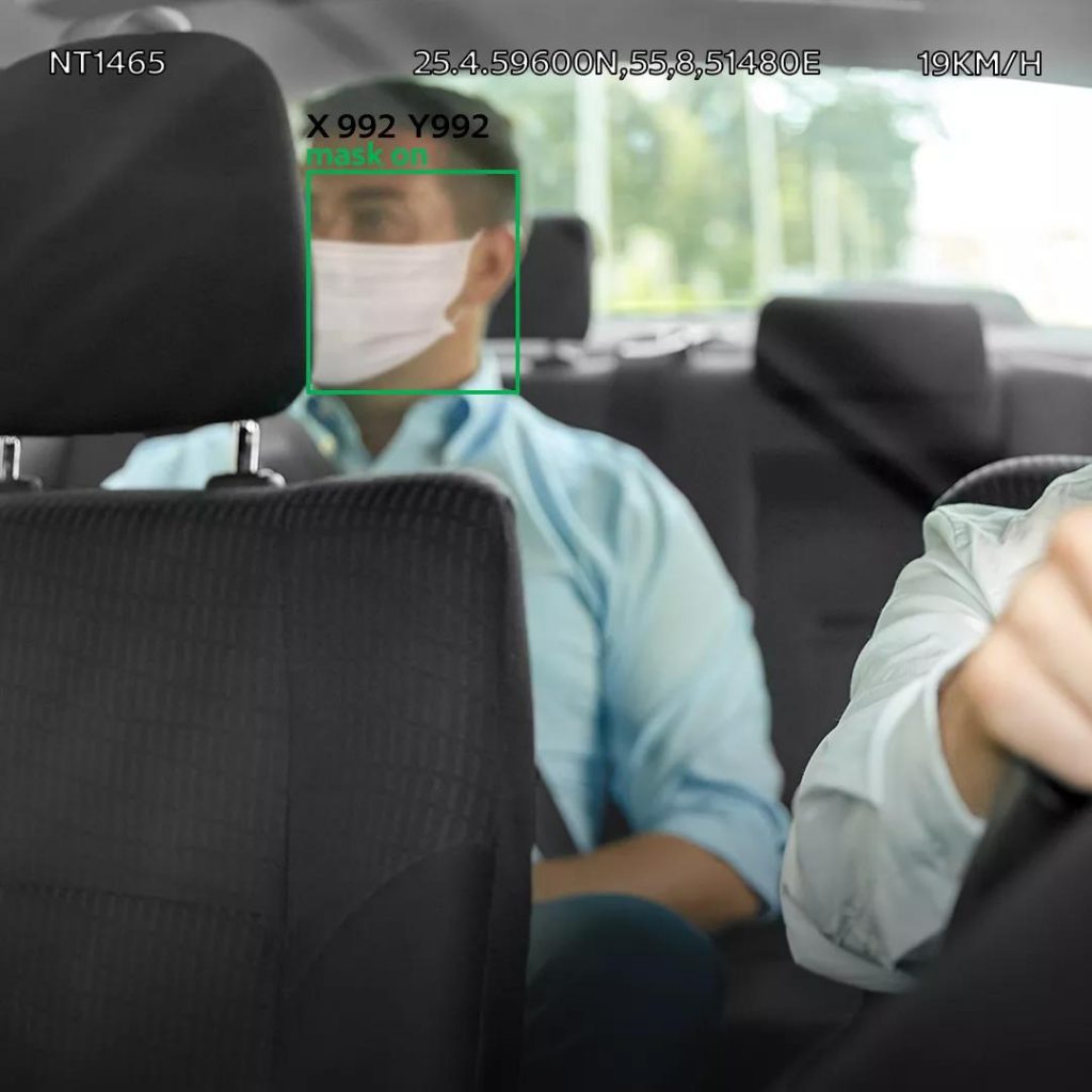Mahboub讲解车载设备的功能时说:“技术团队对AI设备进行了编程,它可以扫描人脸并验证司乘是否正确佩戴口罩,该技术还可以计算司乘之间的物理距离。”