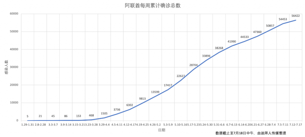 周五(7月17日),阿联酋卫生和预防部宣布,该国单日新增293例感染病例,感染总数为56422例。
