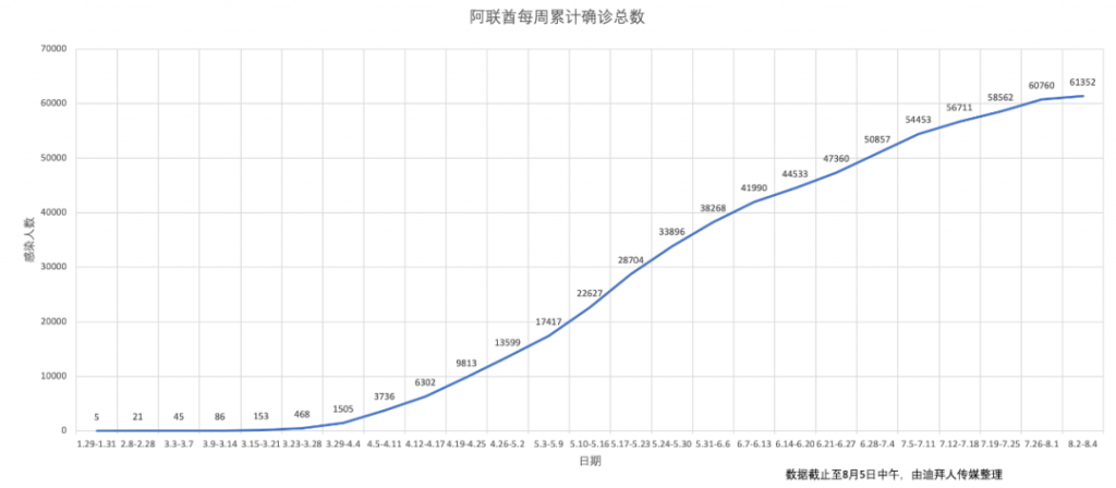 周二(8月4日),阿联酋卫生和预防部表示,该国单日新增189例感染病例,感染总数为61352例。