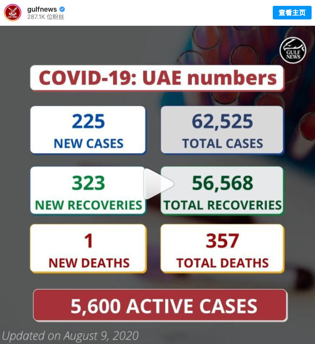 >阿联酋单日新增225例感染病例,另有1人死亡323人痊愈