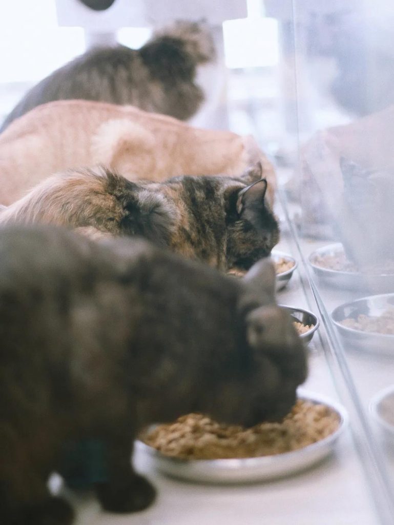 幸运的话,可以偶遇喵星人围在一起进食,这样的画面,简直太治愈,大家不争不抢,又被萌到了!