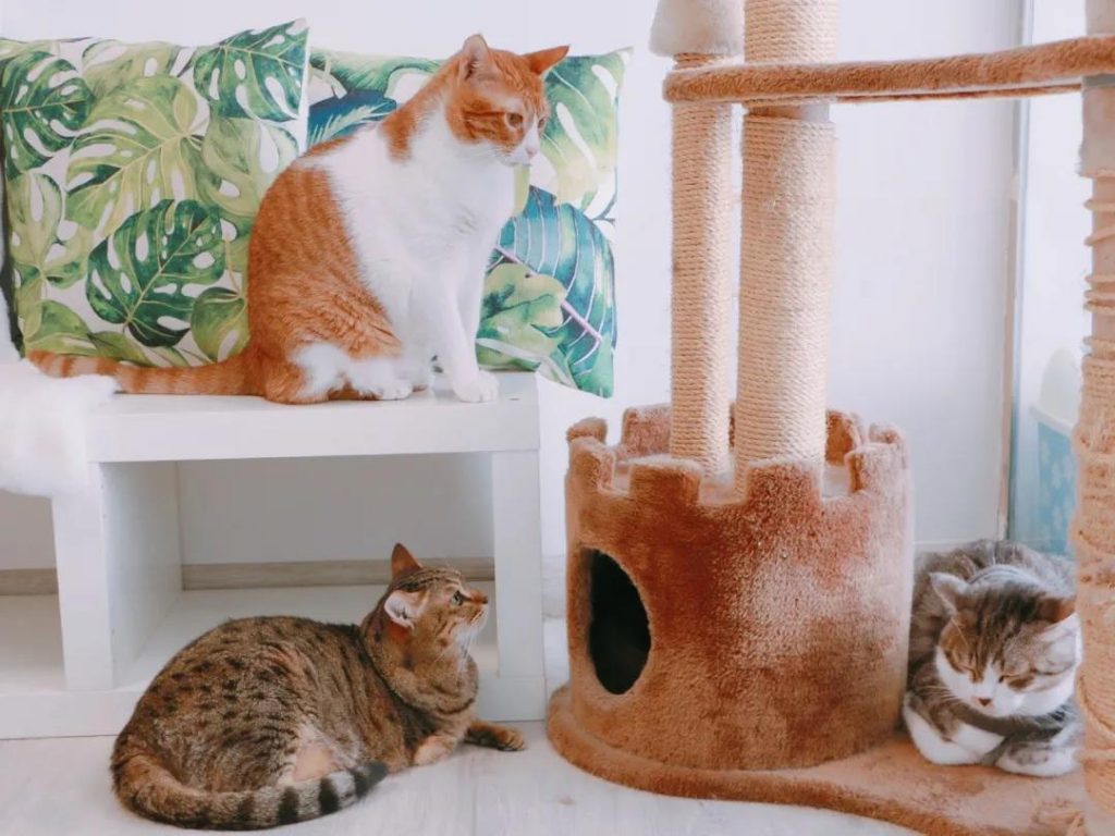 这里不仅有猫咪小憩和磨爪子的地方,还修建了各式各样适合猫咪攀爬的道具。