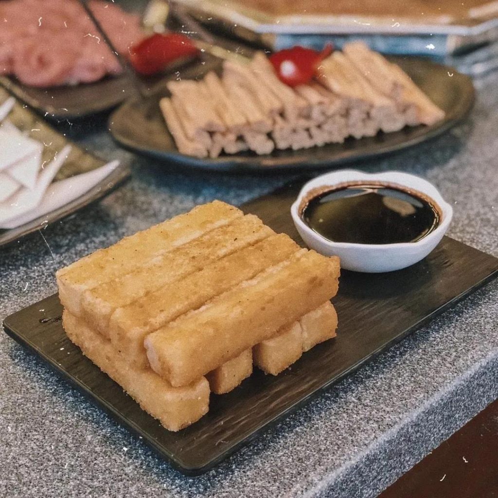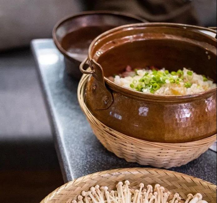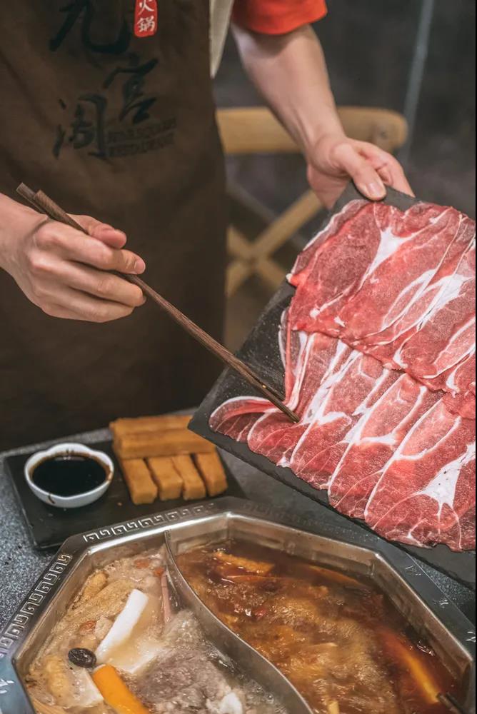 涮品上,涮肉首推美国安格斯牛眼肉,新鲜的牛肉被切得轻薄如翼可透光,纹理漂亮,涮个几秒钟即可捞起大快朵颐,无与伦比的口感和味道尤其令人上头。