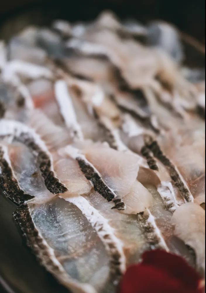 黑鱼片也是强烈推荐的,每片鱼肉薄厚均匀,晶莹剔透,带着一点点鱼皮,用筷子夹着放入锅中只需烫几秒,就能获得非常好的口感,Q弹爽口,也无鱼刺。另外毛肚、鸭肠、虾滑等也是不可或缺的涮品。