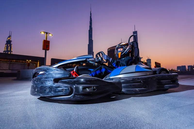 EKart Zabeel搬到了迪拜购物中心的屋顶,游客有机会在哈利法塔(Burj Khalifa)的背景下以极高的速度在赛道上玩转卡丁车。