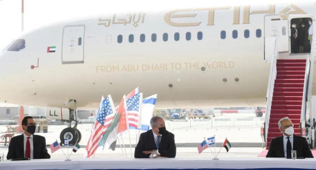 陪同他们的是美国财政部长Steven Mnuchin和中东特使Ari Berkowitz,他们周一在阿布扎比举行了会谈,代表团受到了以色列总理本杰明·内塔尼亚胡(Benjamin Netanyahu)的欢迎。