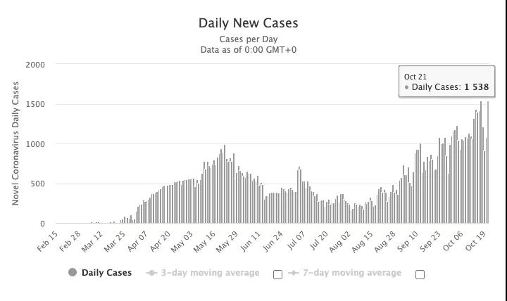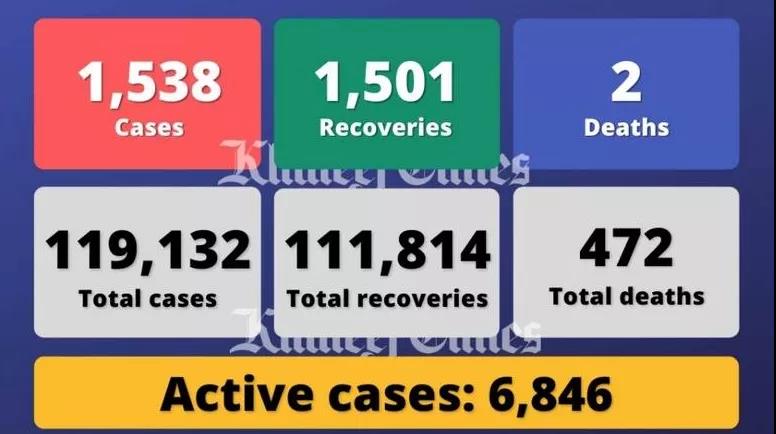 周三(10.21),阿联酋卫生和预防部宣布,在进行了105740次新的病毒检测之后,该国单日新增1538例感染病例,感染总数为119132例。