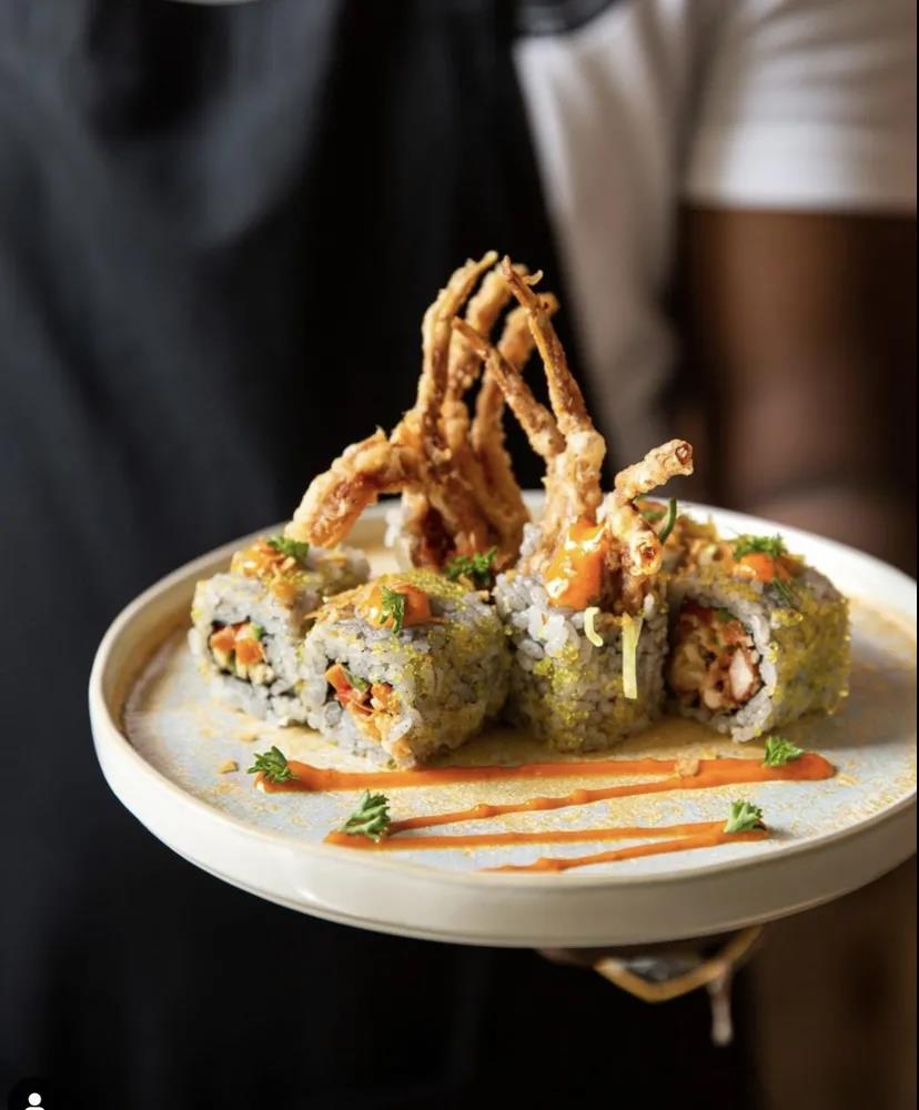 迪拜玩寿司的餐厅真的太多了,但标准真的是层次不齐,常见的什么加州卷,龙卷这次就统统靠边吧,来试试这家店强烈推荐的软壳蟹天妇罗寿司,听名字就很高级有木有。用的是一整只软壳蟹,配以天妇罗的技艺,再用新鲜的墨西哥辣椒、腌制的红灯笼椒和黑芝麻米饭搭配。一口咬下金黄酥脆,味蕾在口中不断翻滚变化。