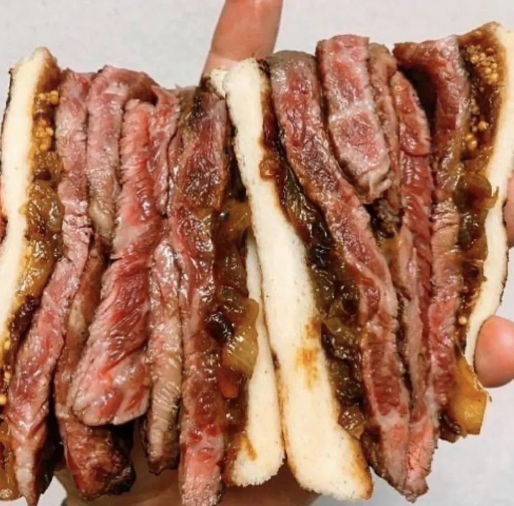 在澳洲和牛大行其道的迪拜,能吃上日本和牛其实是不容易的,而日本和牛一出,整个餐标也会直线上升。全场最贵的一道菜,就属这日本和牛三明治。而最高级的食材,往往采用最朴实的做法。相比迪拜很多和牛汉堡用的其实是肉馅,Reif的和牛三明治用的是一整块的厚切和牛牛排,很有诚意。经过高温碳烧,和牛鲜嫩的汁水被牢牢锁住,轻轻拿起捏一下,都能溢出和牛肉里满满的肌红蛋白。塞进嘴里,妙不可言,可以说这是我吃过最好吃满分三明治了。
