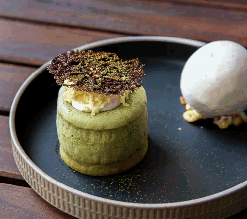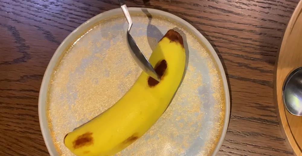 切开抹茶蛋糕的瞬间就会淌出温热的流心,并不甜腻的蛋糕流心和冰淇淋相伴一同放入口中,任冰淇淋在甜甜的暖流中肆意融化,心中只有两个字 —— 美好。作为本次就餐的收尾之作再好不过。其实他们家还有不定期的甜品,比如一根极其逼真的香蕉冰淇淋,绝对适合网红们来拍拍拍。