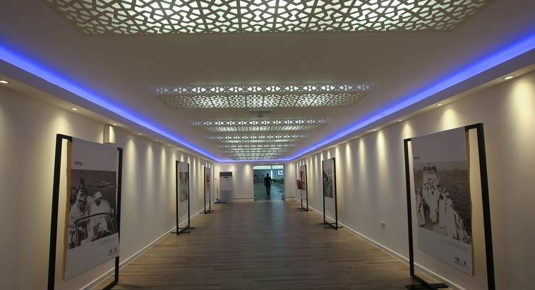 通往等候大厅的专用通道设计也是经过深思熟虑。走道上是描绘着阿布扎比历史的海报——机场、阿联酋富有远见的开国元勋、已故的谢赫·扎耶德·本·苏丹·阿勒纳哈扬等等。