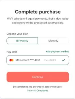 付款页面选择Spotii进行“后付”