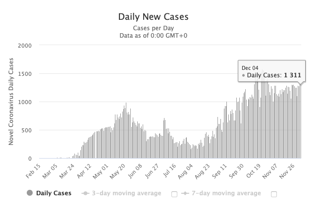 周五(12.4),阿联酋卫生和预防部宣布,在进行了113928次病毒检测之后,该国单日新增1311例感染病例,感染总数为174062例。