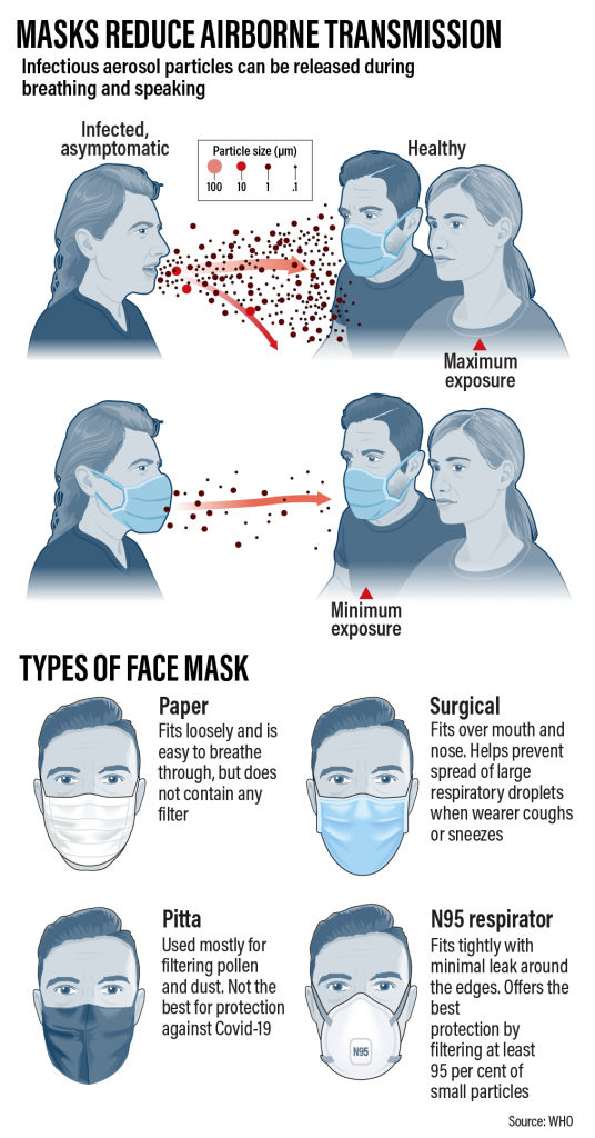 例如,在加拿大、德国和美国的研究表明,在人们被告知需要戴口罩后,感染率显著下降。