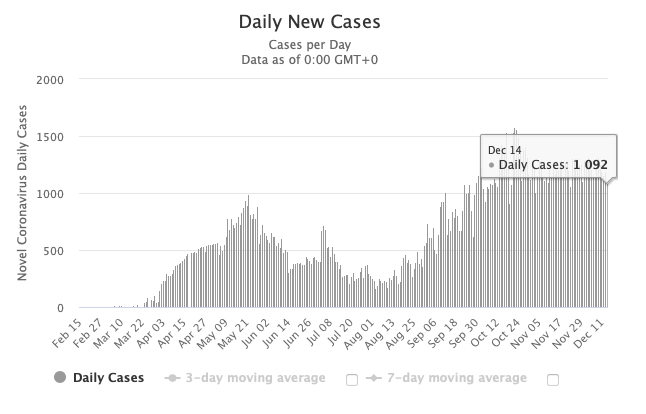 图源:worldometers,数据截止至12月15日中午
