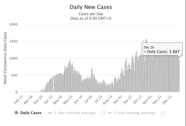 周一(12.28),阿联酋卫生和预防部宣布,在进行了100946次病毒检测之后,该国单日新增1027例感染病例,感染总数为202863例。
