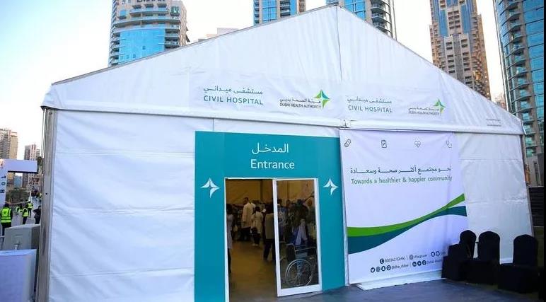 为确保迪拜迎新活动期间的安全,迪拜卫生局(DHA)已在迪拜市中心设立了三所方舱医院,并部署了数支医疗队。