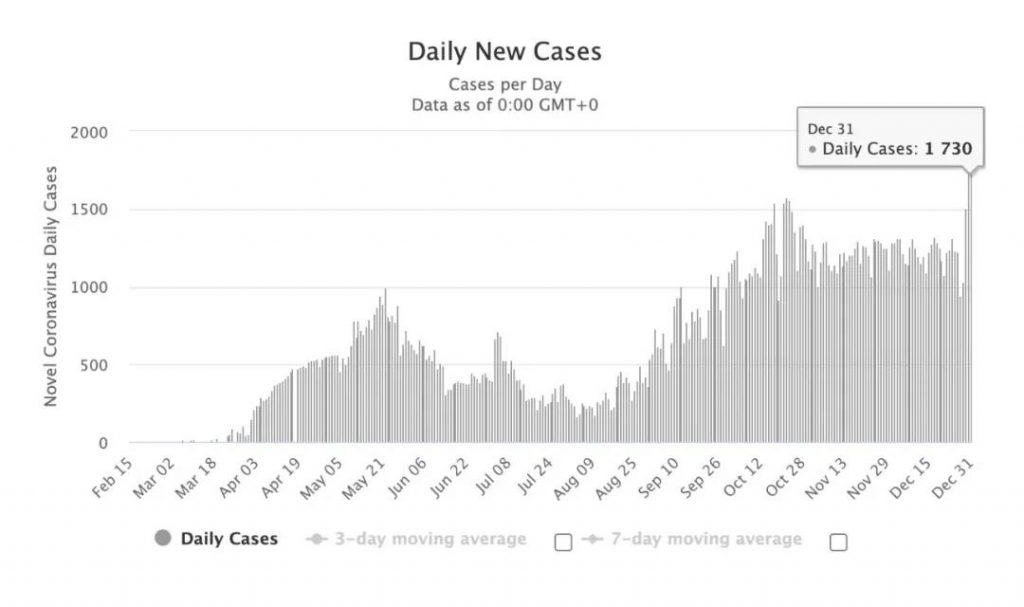 图源:worldometers,数据截止至1月1日中午