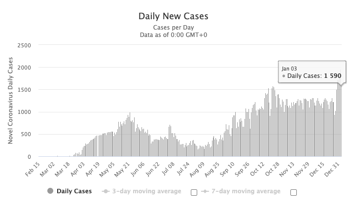 图源:worldometers,数据截止至1月4日中午