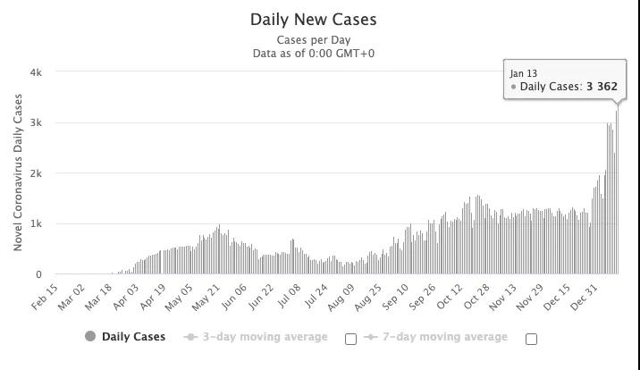 图源:worldometers,数据截止至1月14日中午