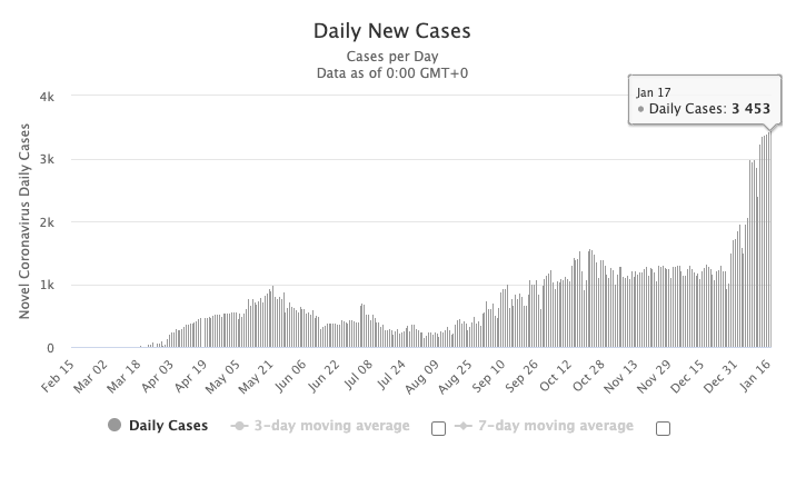 图源:worldometers,数据截止至1月18日中午