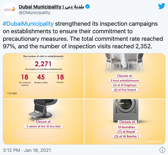 >迪拜:18家商店因为违反防疫准则而被要求停业整顿