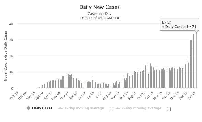 图源:worldometers,数据截止至1月19日中午