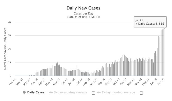 但自圣诞节和新年假期以来,感染人数激增,从12月下旬的每天约1000人上升到每天3000多人。