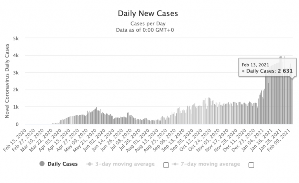 图源:worldometers,数据截止至2月14日中午