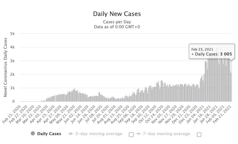 周二(2.23),阿联酋卫生和预防部宣布,在进行了175284次病毒检测之后,该国单日新增3005例感染病例,感染总数为375535例。