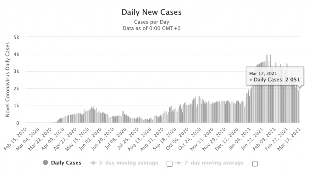 图源:worldometers,数据截止至3月18日中午